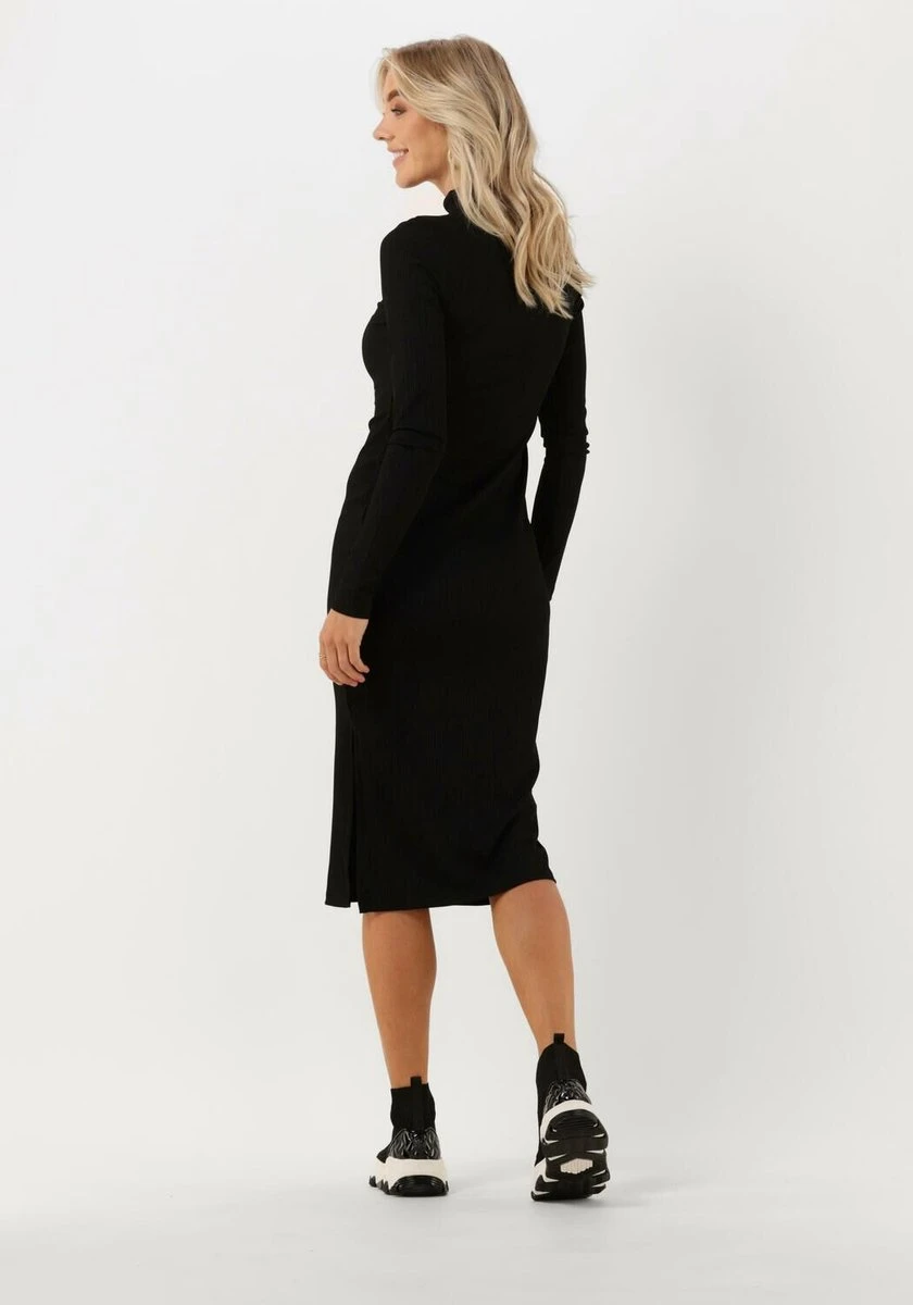 Zwarte Calvin Klein Midi jurk Shiny RIB High Neck Dress