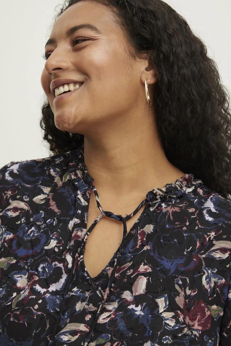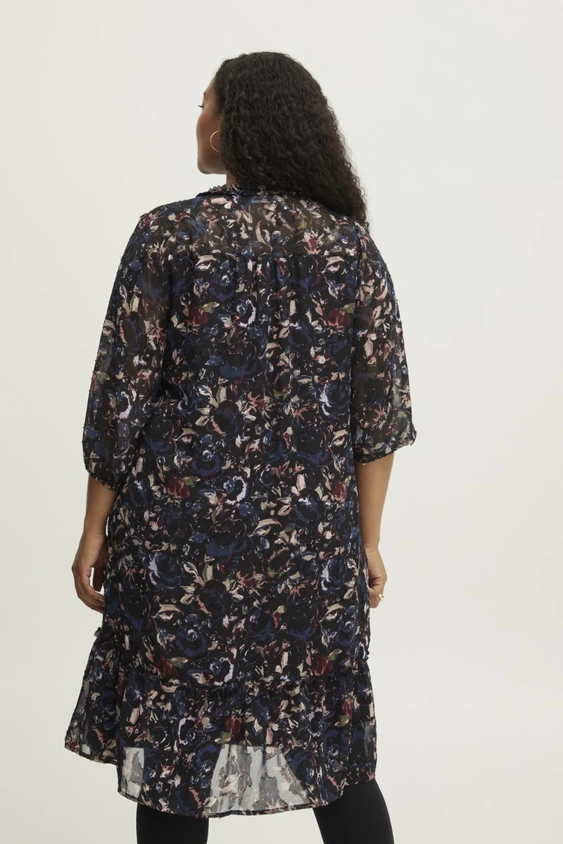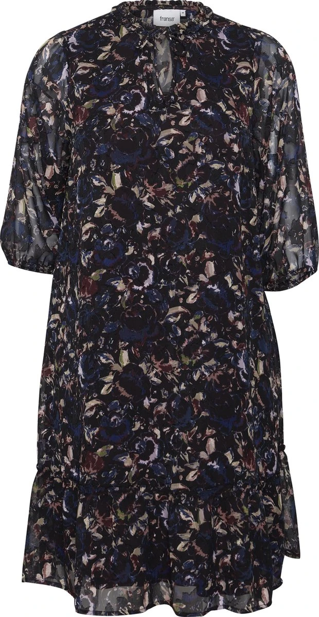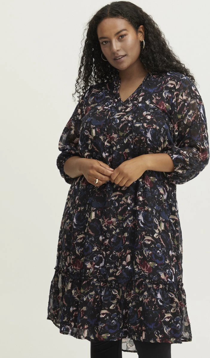 Fransa Plus FPCILLE DR 1 Dames Jurk met loose fit en driekwart mouwen. De jurk komt ongeveer tot aan de knieën.