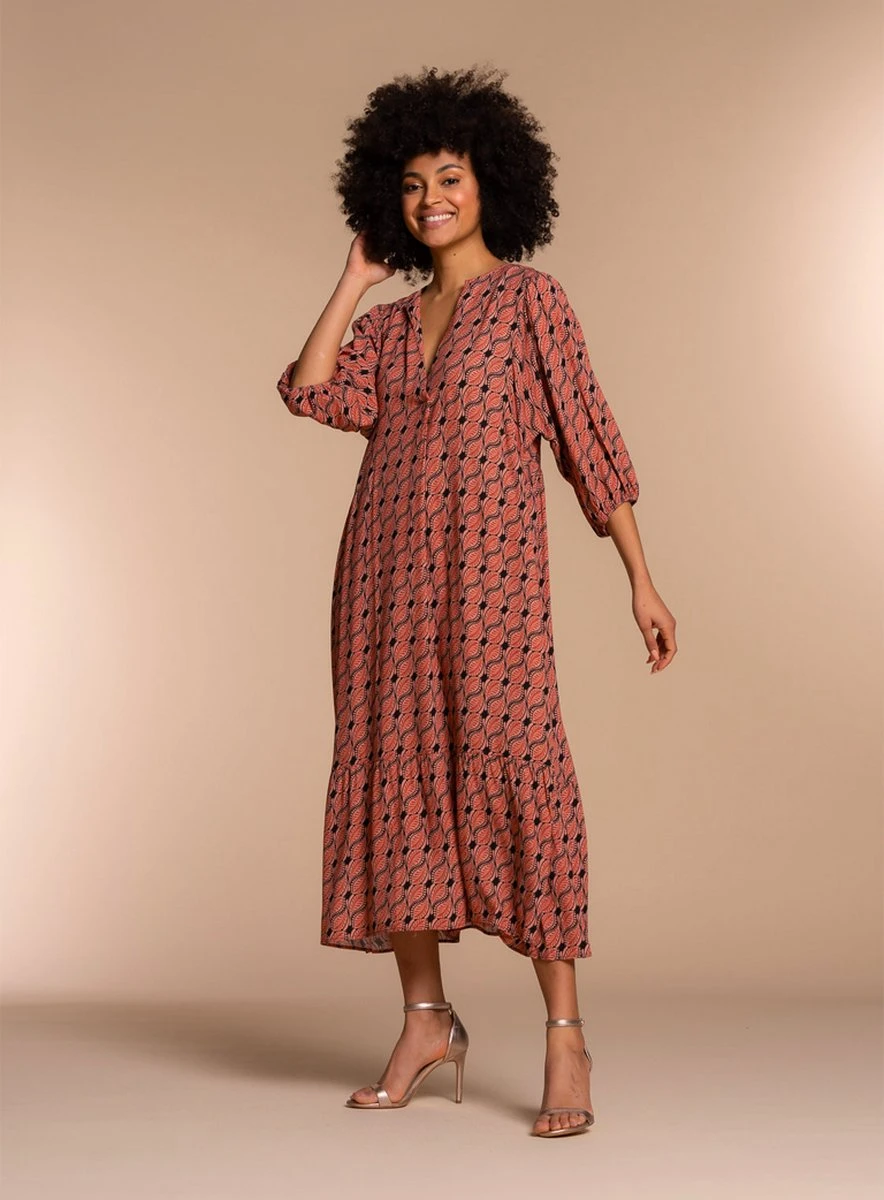 Maxi jurk met allover nature print van het merk Geisha.100% viscose