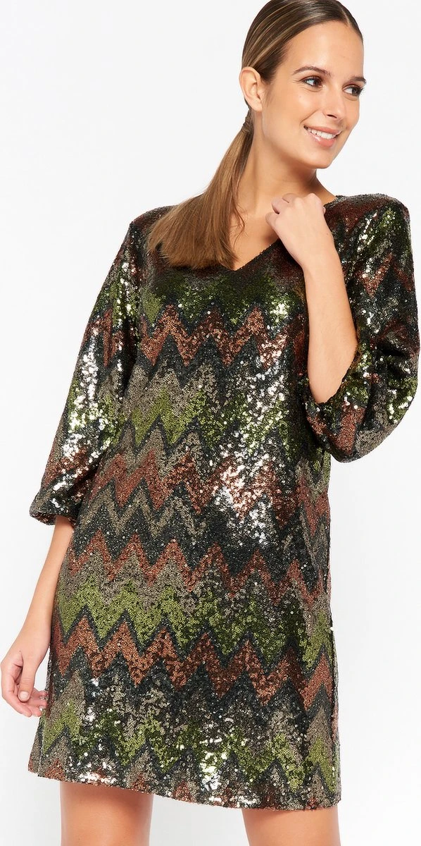 LOLALIZA Jurk Met Pailletten En Zigzagprint – Camel – Maat S