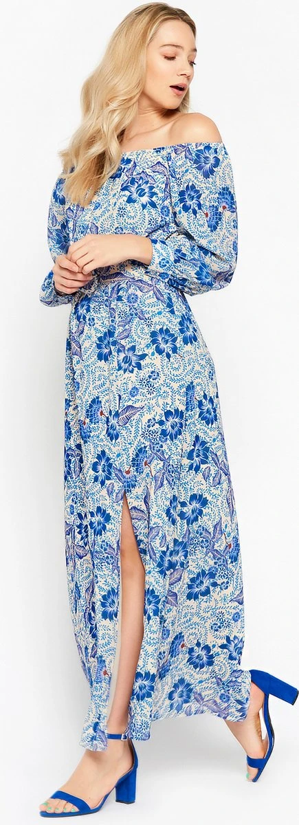 LOLALIZA Maxi-jurk Met Bloemenprint – Blauw – Maat 46
