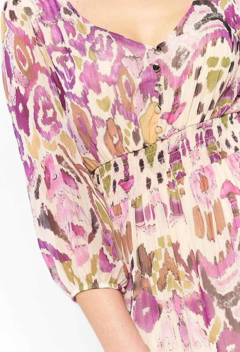 Maxi-jurk Ruches Sierknoopjes Haal de zon naar je kleerkast!