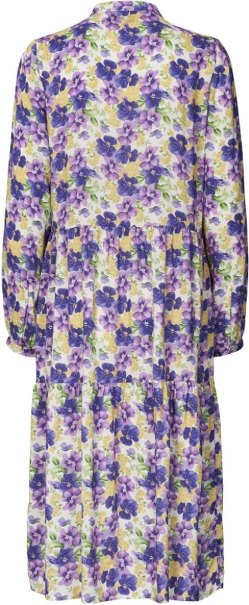 Jurk in vrolijke bloemenprint. De jurk heeft lange mouwen en sluit met knoopjes bovenaan.