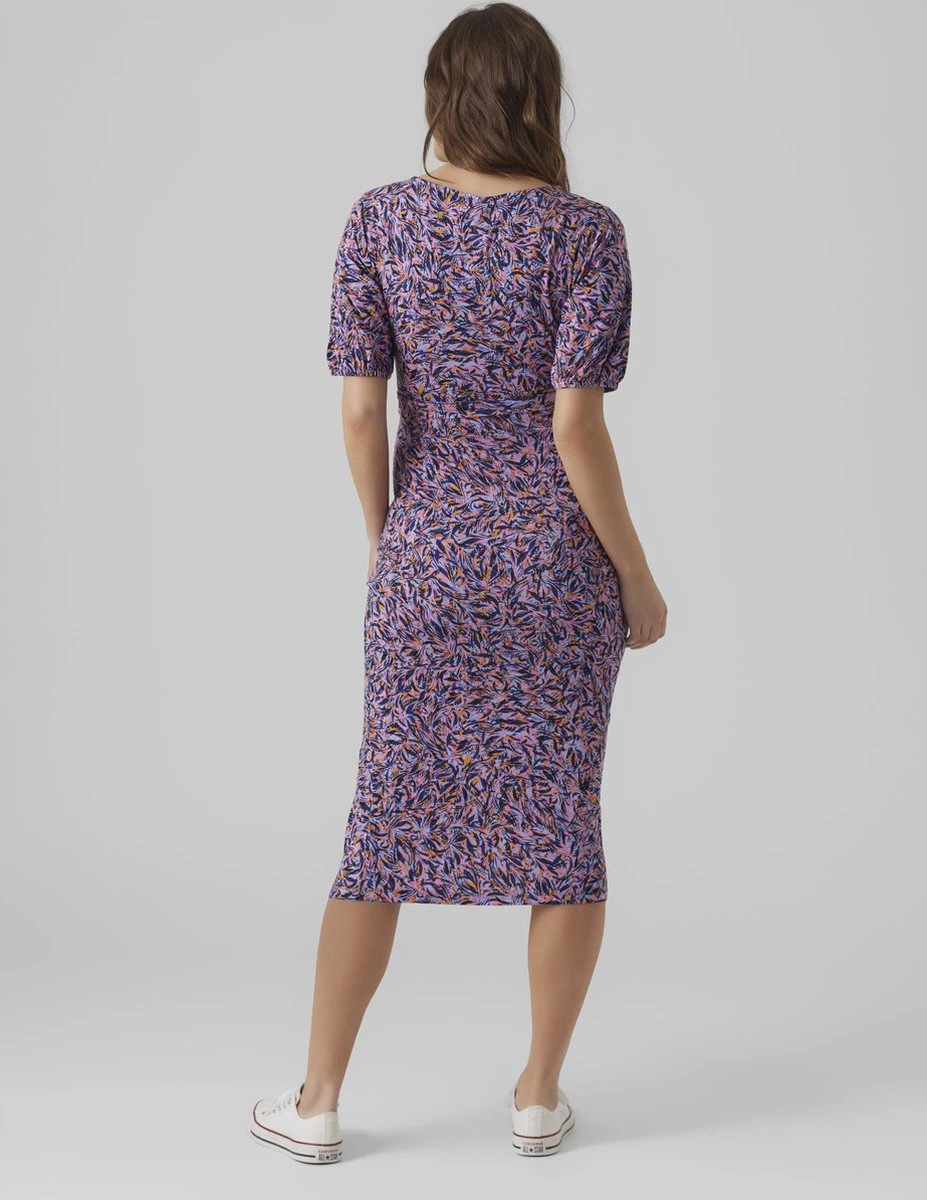 Voeg comfort en kleur toe aan je garderobe met prachtige jurken die je buik ondersteunen en passen bij elke gelegenheid, of het nu een alledaagse activiteit of speciaal evenement is.Ons Bewustzijnslabel geeft aan en verzekert dat het product gewenste materialen bevat zoals biologisch katoen, gerecycled polyester, Lenzing™, EcoVero™, Modal, Viscose & Tencel™.- Type product : Jurk- Hals : V-Hals- Mouw lengte : 3/4 mouwen- Lengte/maat : Boven de knie- Details : Inclusief riem, Voedingsfunctie met wikkeleffect- Print : All-over print, herhaald over de hele stof- Pasvorm : Bodycon fit