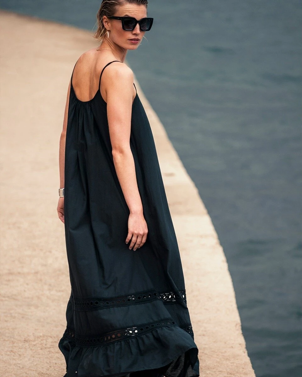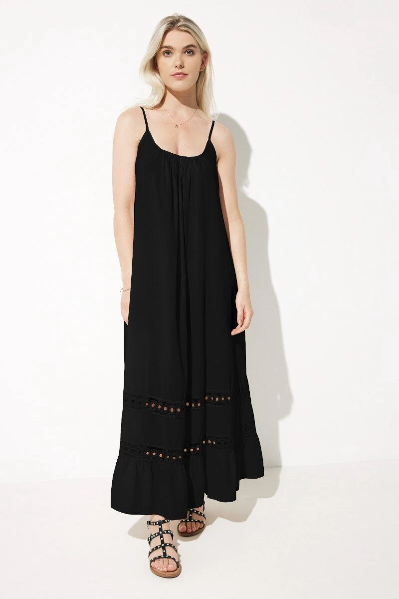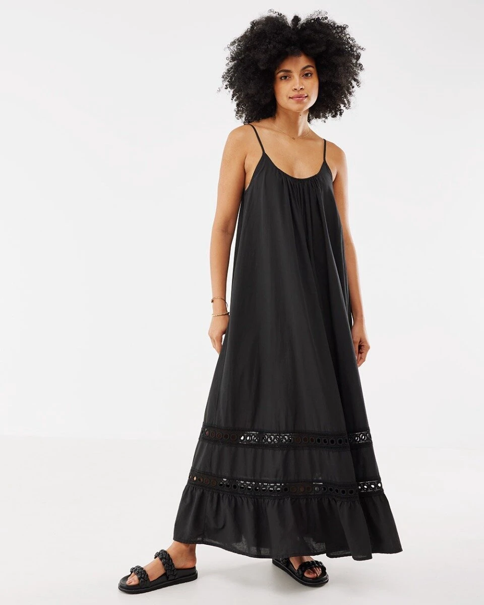 Mexx A-line Broidery Spaghetti Jurk Dames – Zwart – Maat L