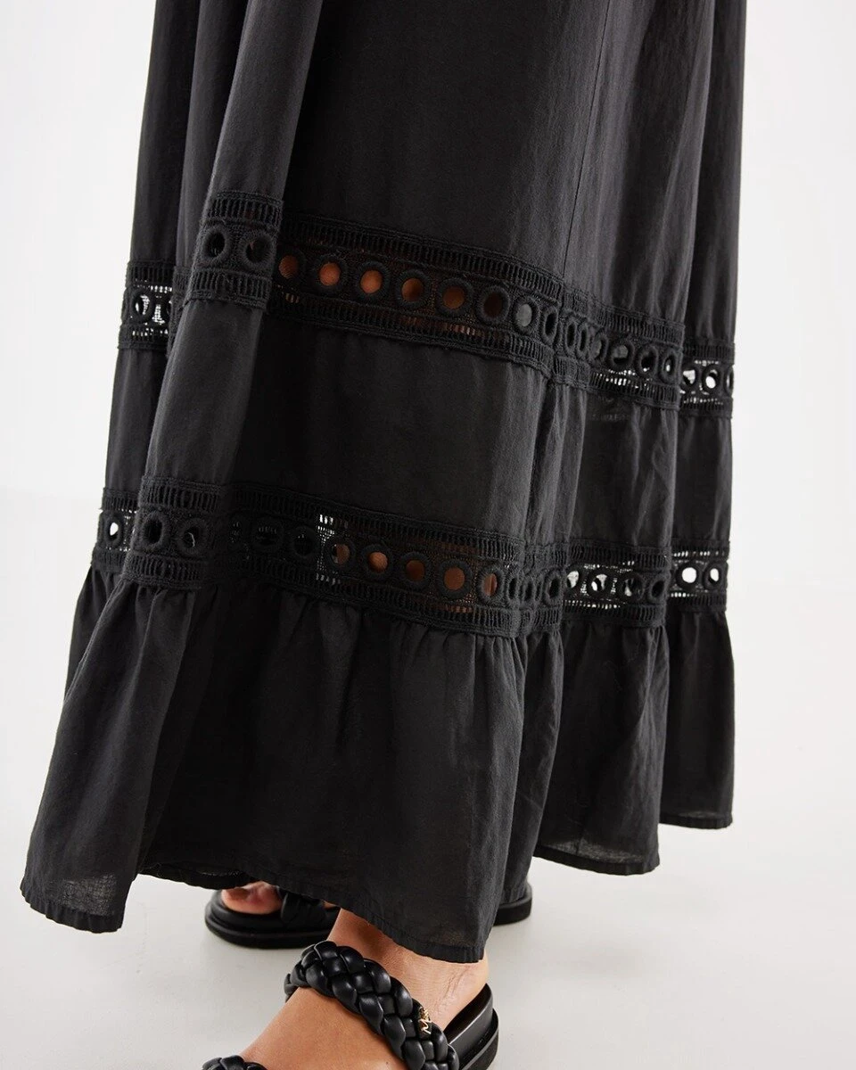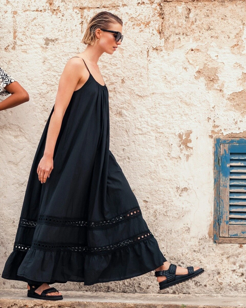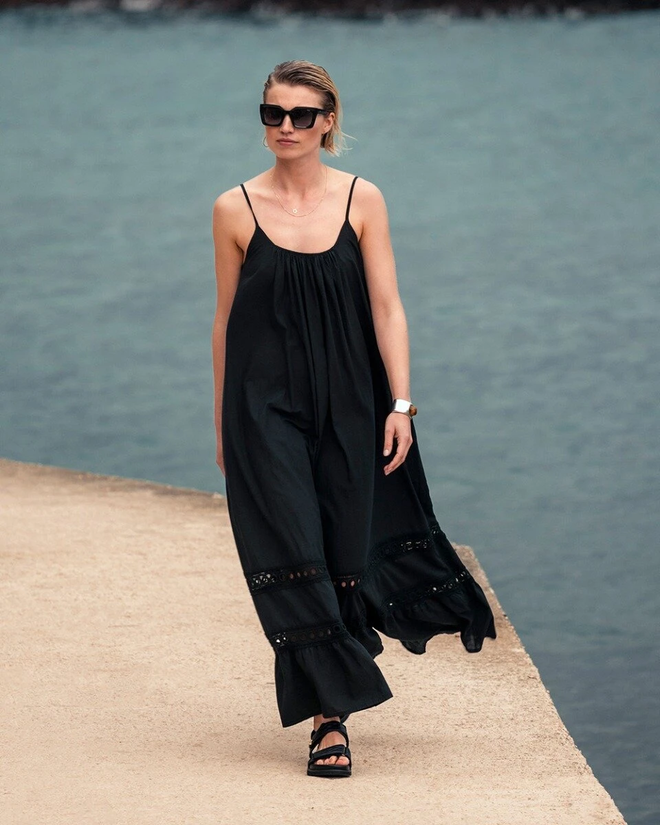 Mexx A-line Broidery Spaghetti Jurk Dames – Zwart – Maat L