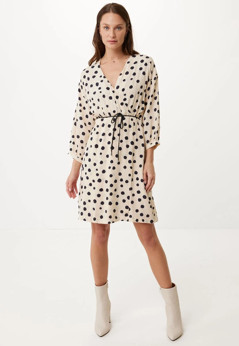 Fake wrap dress all over print Light Sand voor Vrouwen van het merk Mexx uit de collectie Lente/Zomer 2023. Materiaalcompositie: 100% viscose