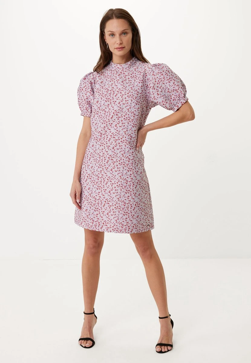 Jacquard Puff Sleeve Dress Pink voor Vrouwen van het merk Mexx uit de collectie Lente/Zomer 2023. Materiaalcompositie: 100% polyester