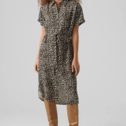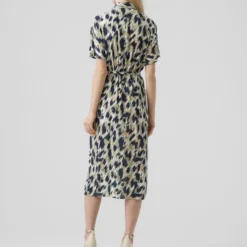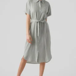 Vero Moda Jurk Vmbumpy Ss Calf Shirt Dress Noos 10279684 Snow White/india Ink Dames Maat – XS