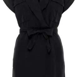 NOISY MAY zwarte, korte jurk van 100% lyocell. Het jurkje heeft een revers kraag, 2 borstzakken en details bij de opgerolde mouwtjes. De taille wordt benadrukt door het taille lint.
