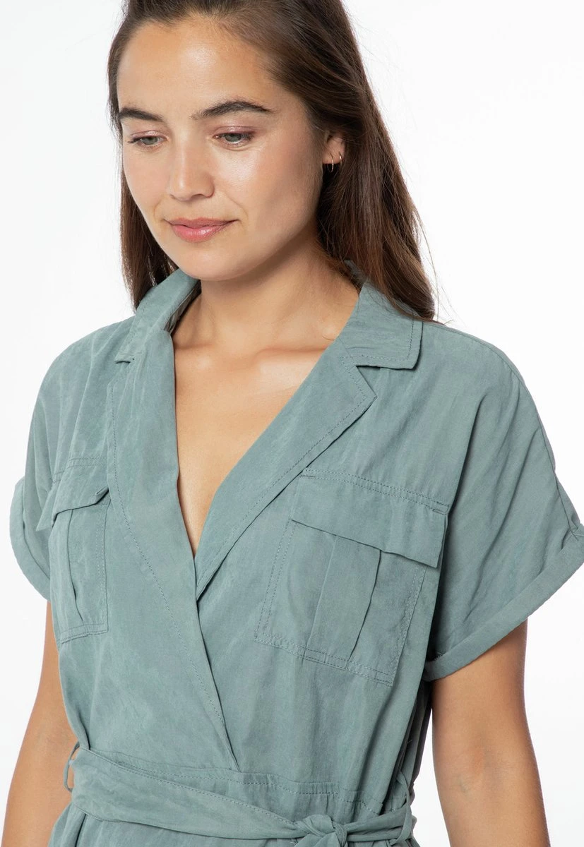 Maak kennis met de NXGARRETI jurk van Protest. NXG is de hoogwaardige streetwearcollectie van Protest: een combinatie van edgy streetlooks met de allerbeste stoffen en sublieme details. Deze prachtige jurk heeft een wikkelstijl en de stof glimt een beetje. Dit model heeft geplooide borstzakken en handige zijzakken. Op de taille zit een stoffen strik. De mouwen zijn opgerold. Deze jurk komt tot boven de knie. De NXGARRETI uit de NXG-collectie wordt jouw favoriete jurk voor deze zomer.