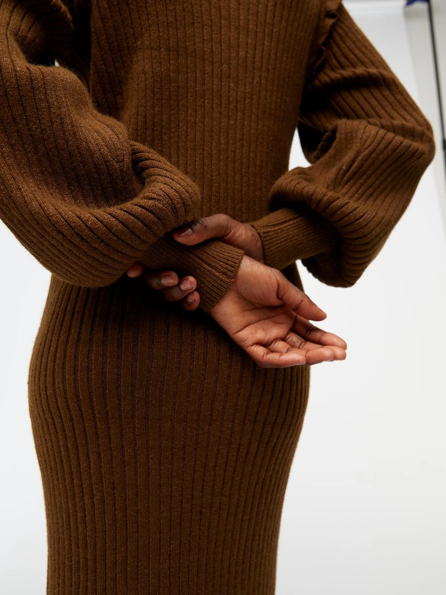 Loungewear of werkkleding? Wat de gelegenheid dan ook is, jij voelt je heerlijk comfortabel in een gebreide jurk. Gebreide stof ontstaat door het in elkaar grijpen van lussen garen voor rekbare, warme en knusse kledingstukken – Type product : Gebreide jurk- Hals : Hoge hals- Mouw lengte : Lange mouwen- Mouwen : Ballonmouwen- Manchetten : Geribde mouwuiteinden- Lengte : Boven de knie- Voering : Ongevoerd