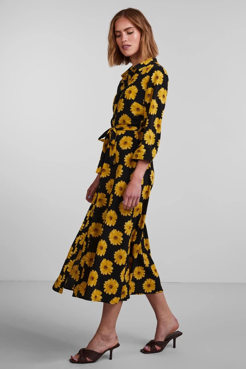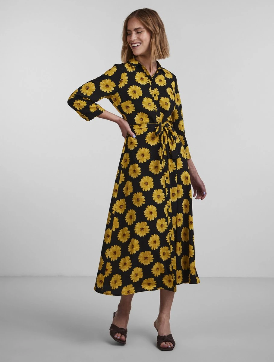 Pieces Jurk Pcjapril 3/4 Ankle Dress D2d Bc 17135407 Black/sunflower Dames Maat – S