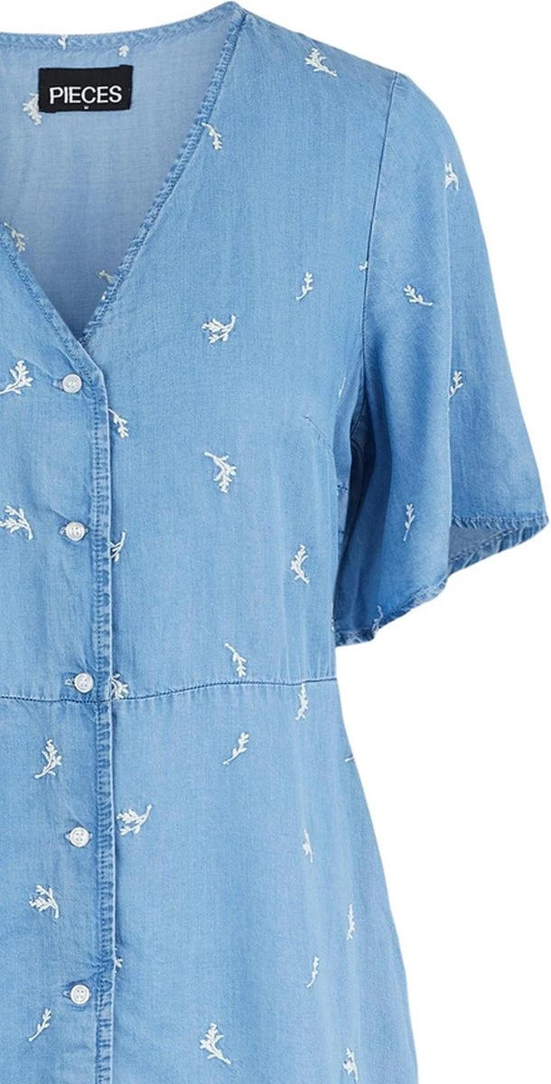 Deze jurk is een echte musthave voor in je kast! De jurk is gemaakt van een lyocell kwaliteit, heeft een korte losse mouw en een fijn embroidery bloemenprint.