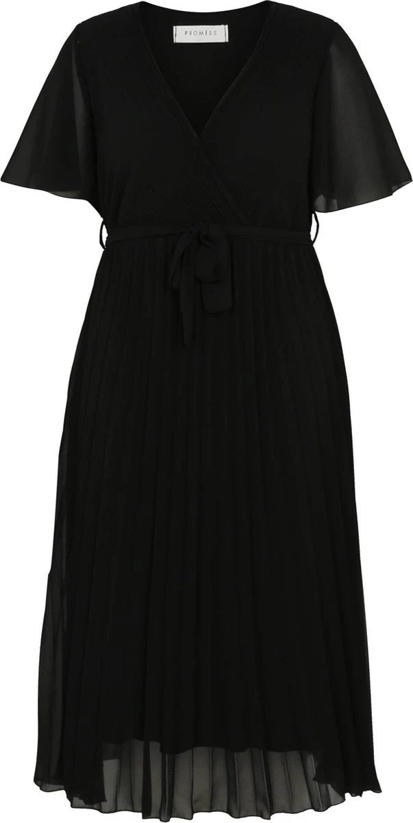 Promiss Halflange, Effen Plisséjurk Met Valse Wikkelkraag