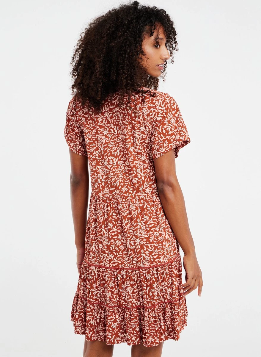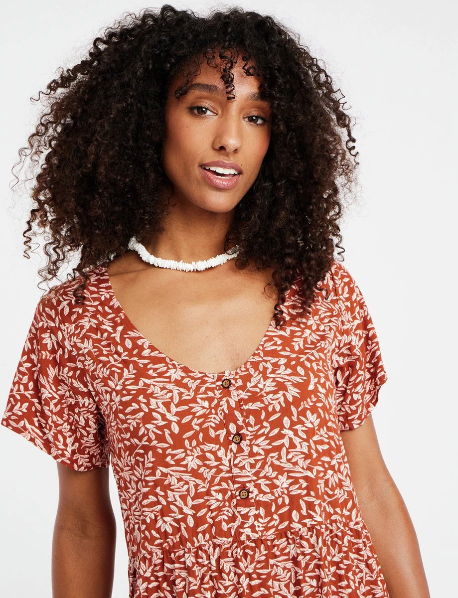 Maak kennis met de PRTLENI van Protest. Deze zomerjurk is gemaakt van 100% viscose, een comfortabele, ademende en lichte stof. De regular fit PRTLENI heeft een flatterende diepe V-hals. De stof heeft een zwart-wit bladpatroon met gele details. De placket aan de voorkant is voorzien van knopen van kokosnoot. De PRTLENI bestaat uit meerdere lagen, wat een grote trend is deze zomer. Deze jurk is ideaal om over je favoriete bikini aan te trekken als je naar het strand gaat. Je bent klaar voor de zomer met de PRTLENI van Protest.