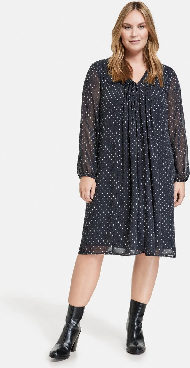 SAMOON Dames Chiffon Jurk Navy Gemustert-46