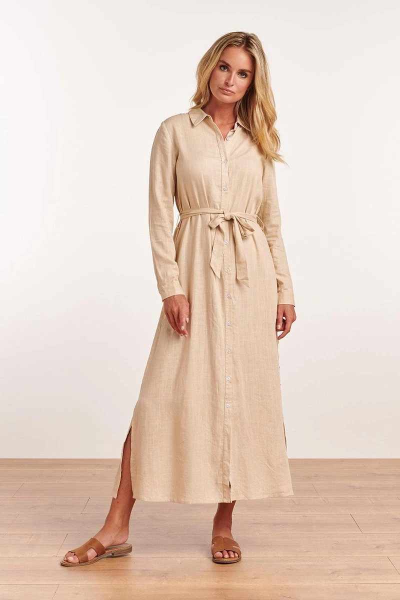Dit item is een de perfecte basisjurk voor je garderobe! Dit item is gemaakt van 70% rayon en 30% linnen en voelt daardoor luchtig en comfortabel aan. Het model heeft lange mouwen met manchetten, een kraag, strikceintuur en een knoopsluiting. Draag deze jurk leuk met sneakers of slippertjes voor een perfecte look.