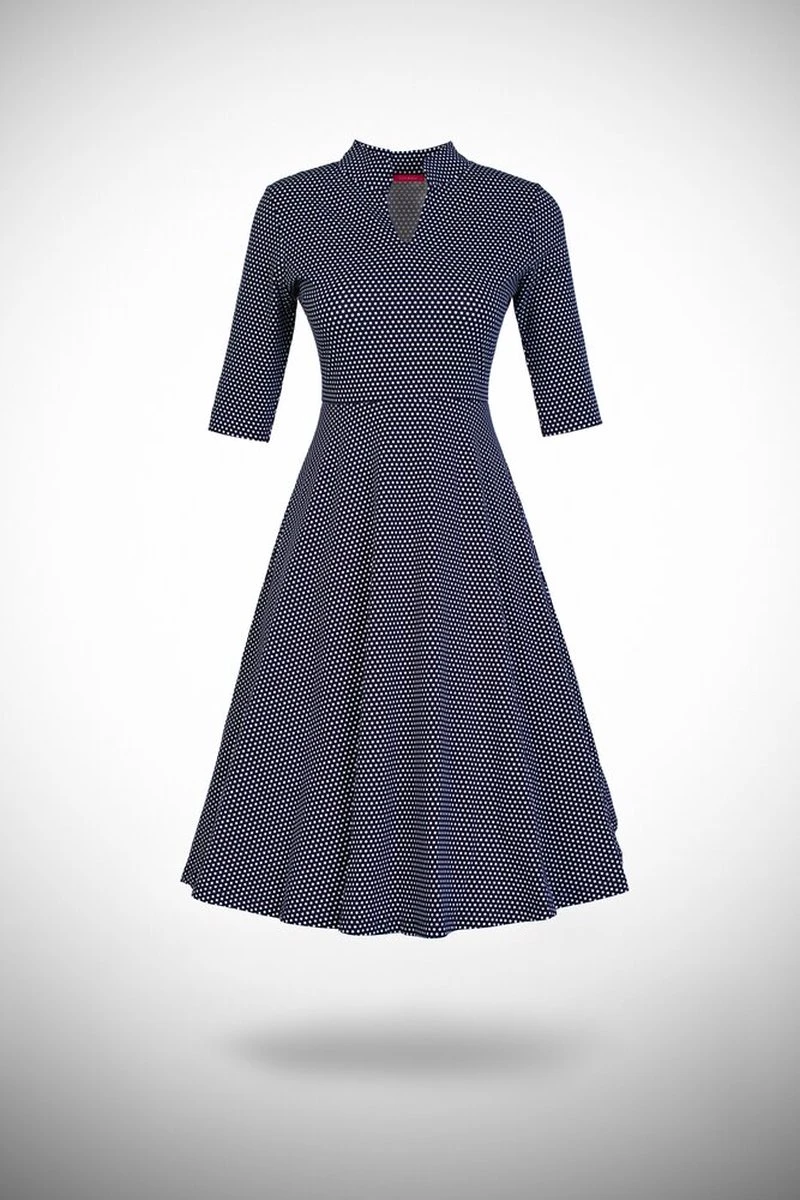 Swing Jurk Bangkok Driekwart Mouw Dot Marine