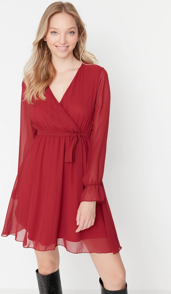 Trendyol Vrouwen Ballon Mouw Cache-coeur Schaatser Jurk
