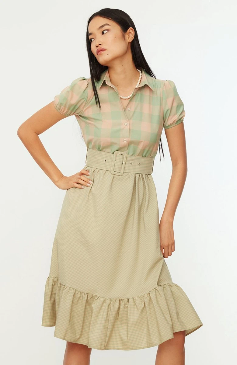 Trendyol Vrouwen Ballon Mouw Kraag Schaatser Jurk