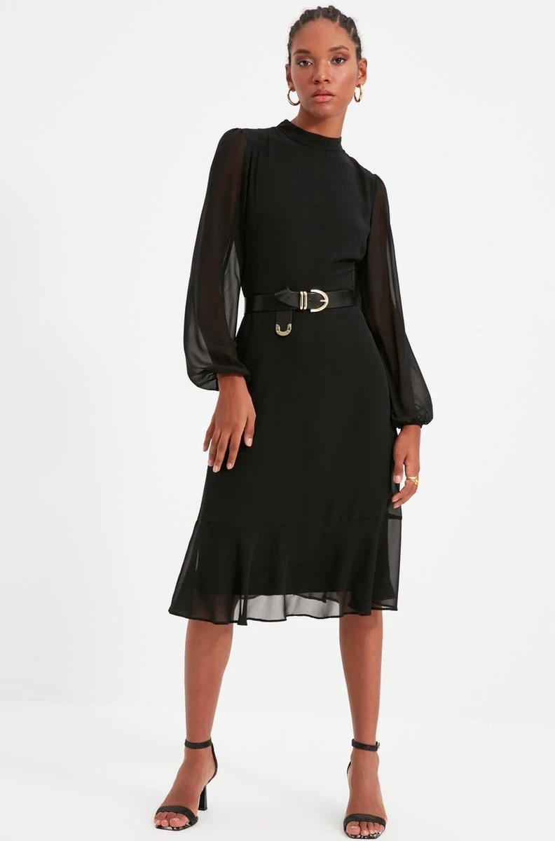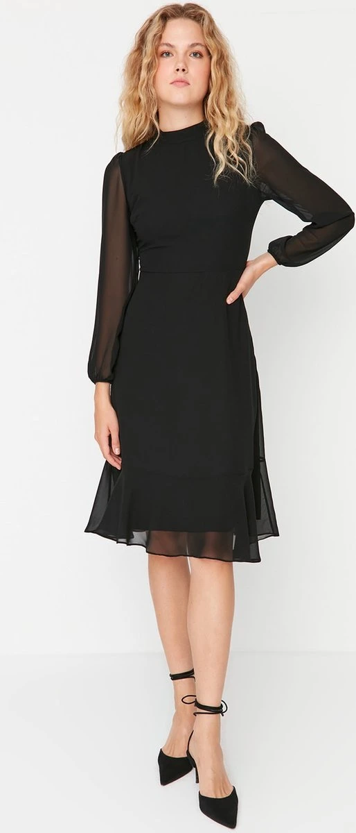 Trendyol Vrouwen Ballon Mouw Staande Kraag A-lijn Jurk