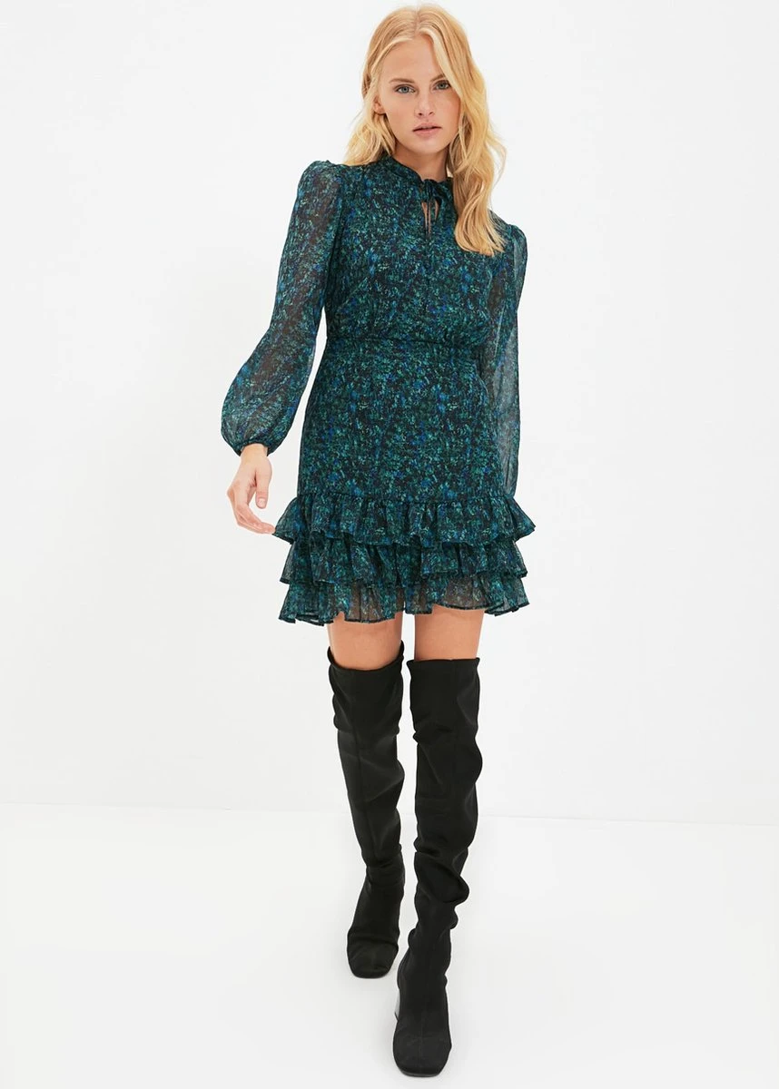 Trendyol Vrouwen Ballon Mouw Staande Kraag A-lijn Jurk