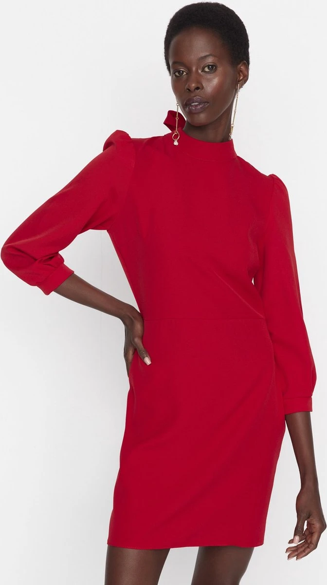 Trendyol Vrouwen Ballon Mouw Staande Kraag Bodycon Jurk