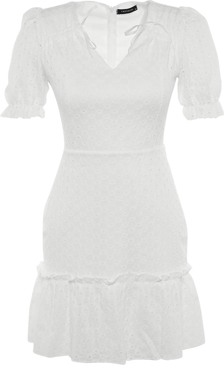 Trendyol Vrouwen Ballon Mouw V-hals Ruche Zoom Jurk