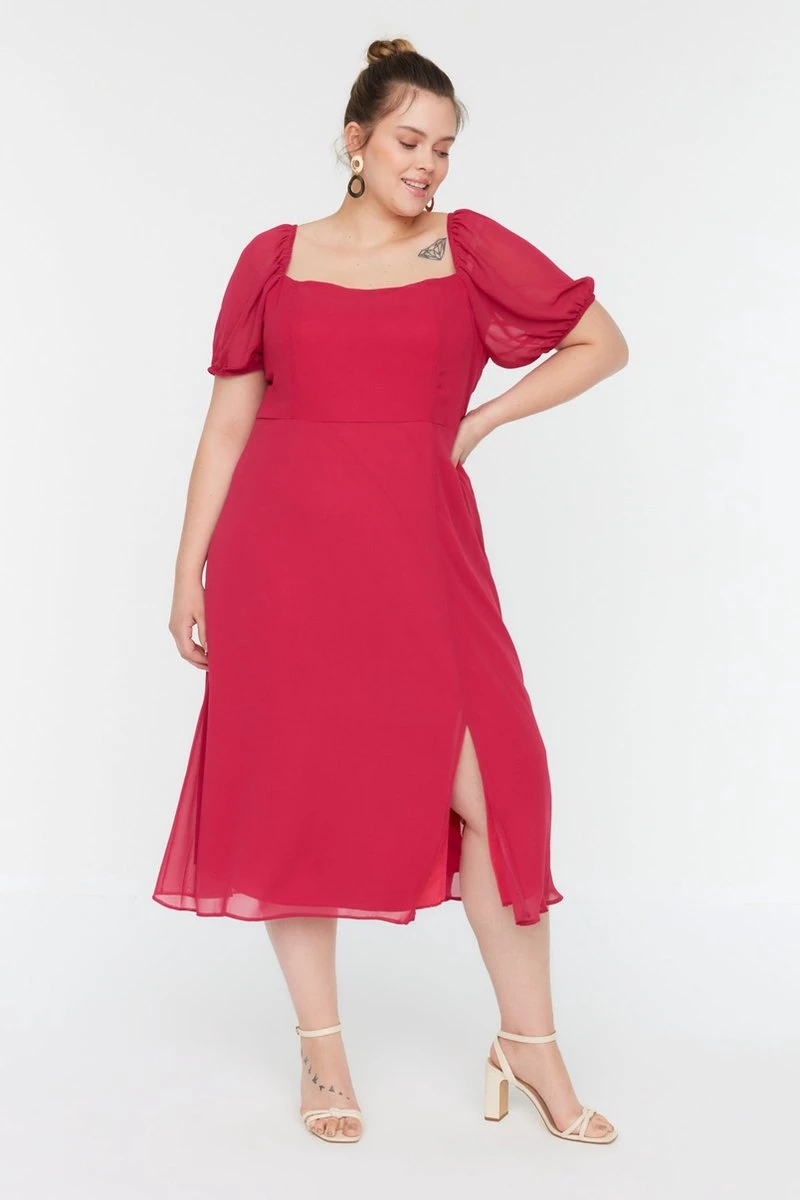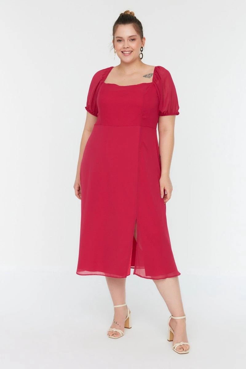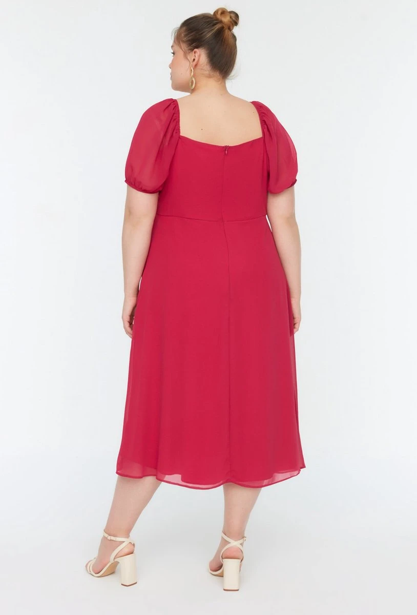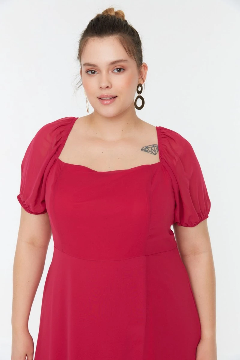 Trendyol Vrouwen Ballon Mouw Vierkante Kraag A-lijn Grote Maten Jurk