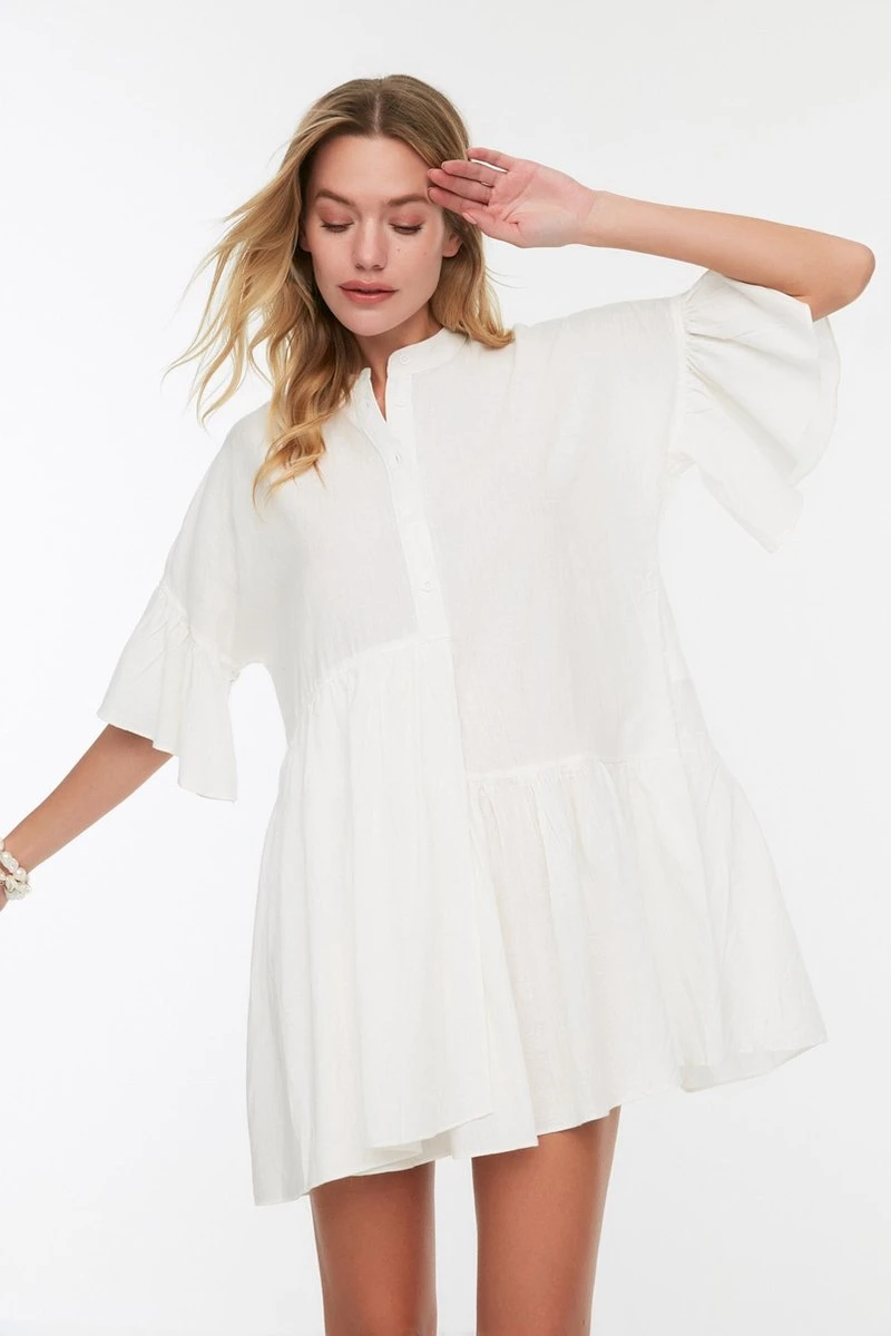 Trendyol Vrouwen Gepofte/ruche Mouw Lieve Schat Aangerimpelde Jurk Jurk