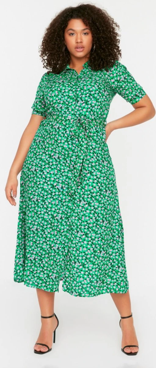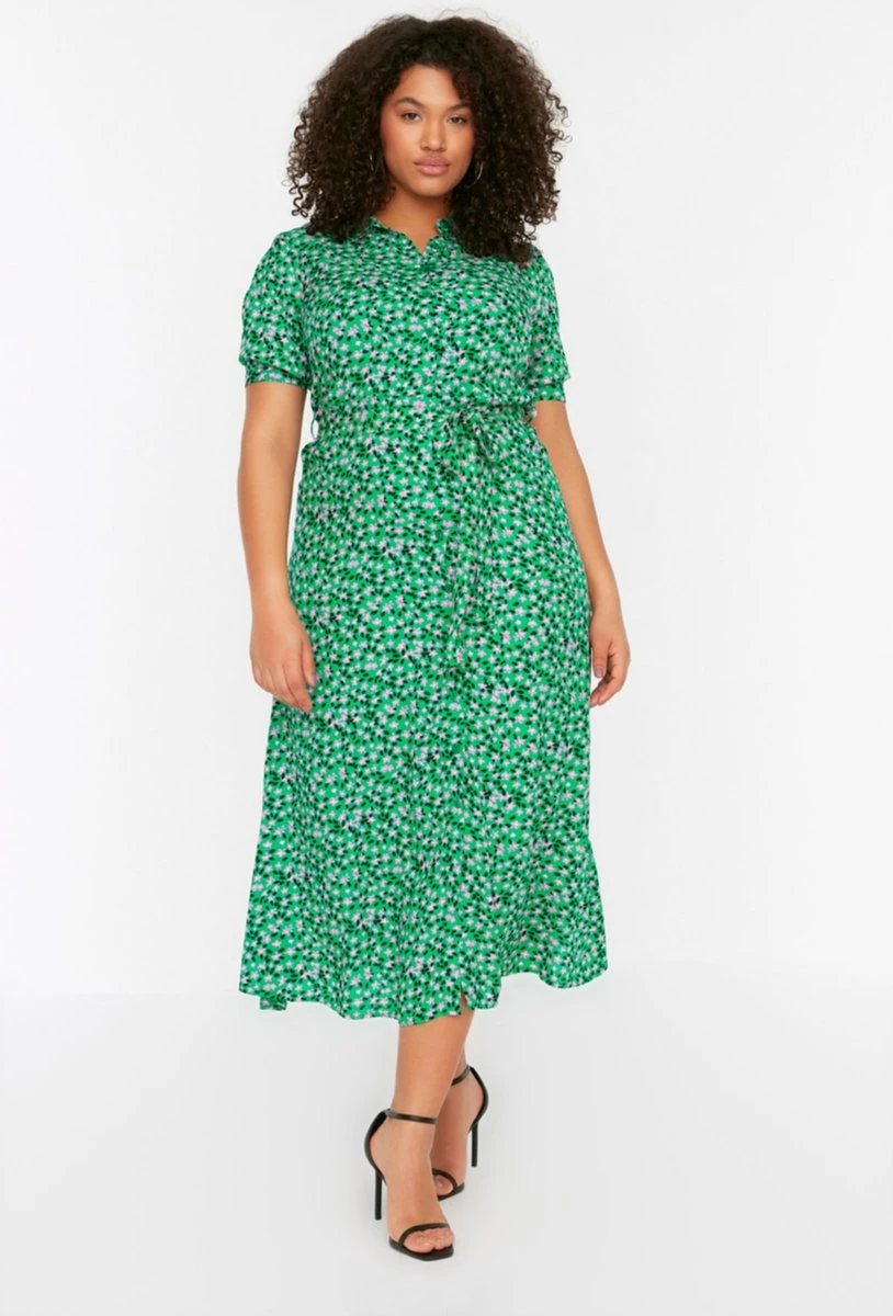 Trendyol Vrouwen Standaard Mouw Kraag Basis Grote Maten Jurk