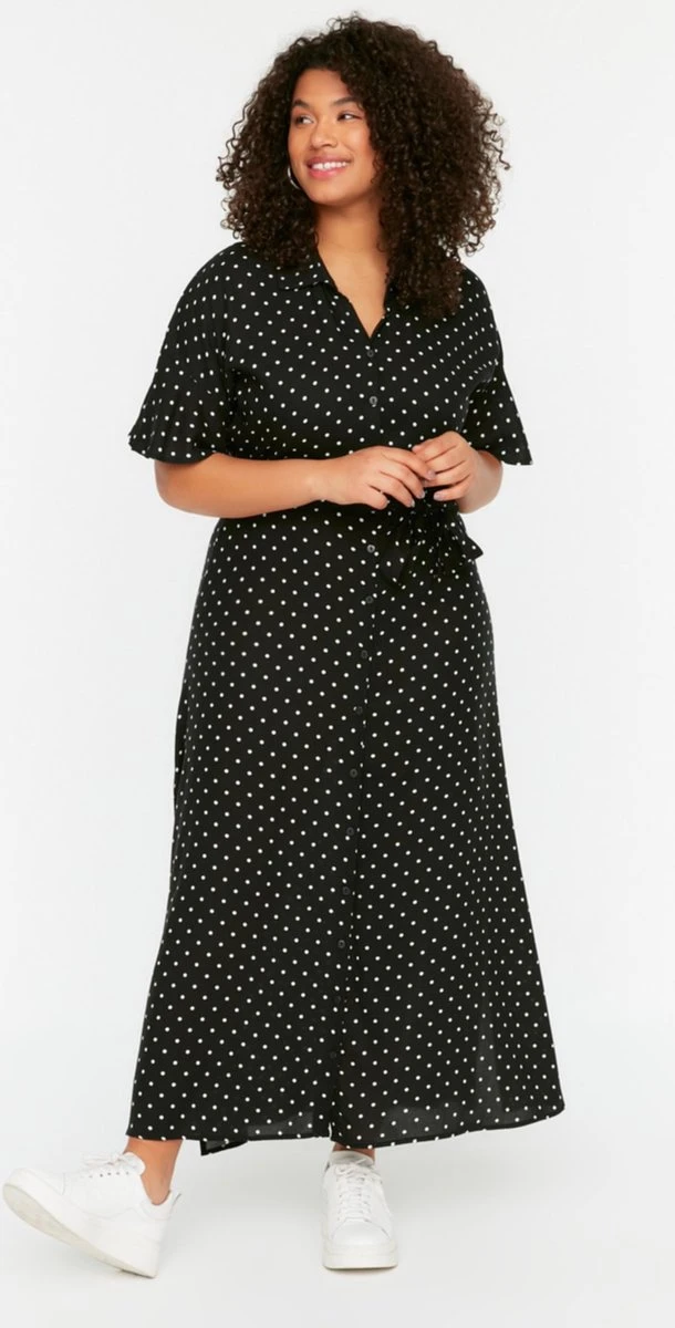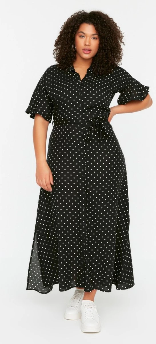 Trendyol Vrouwen Standaard Mouw Kraag Basis Grote Maten Jurk