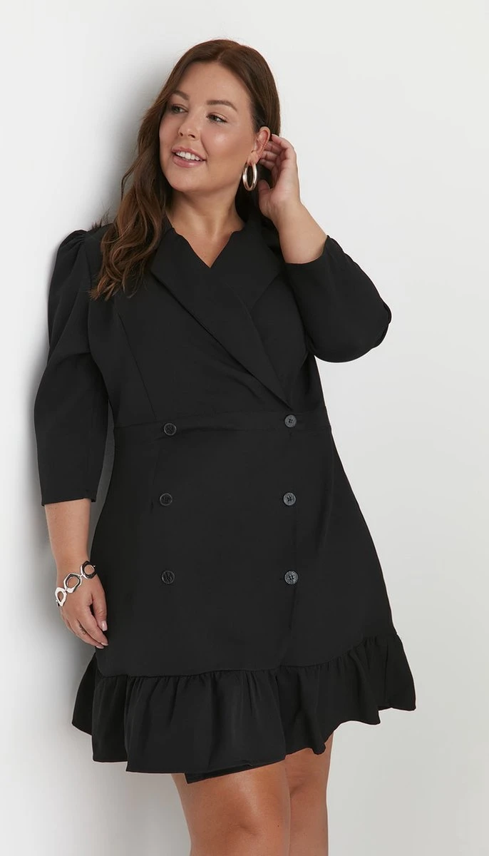 Trendyol Vrouwen Standaard Mouw Reverskraag Basis Grote Maten Jurk