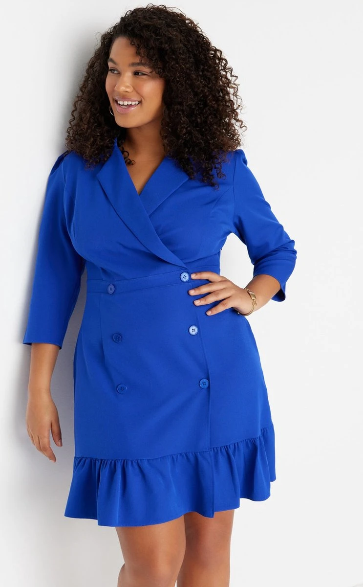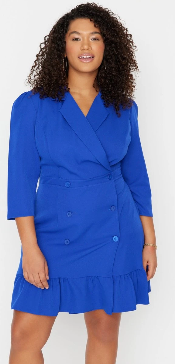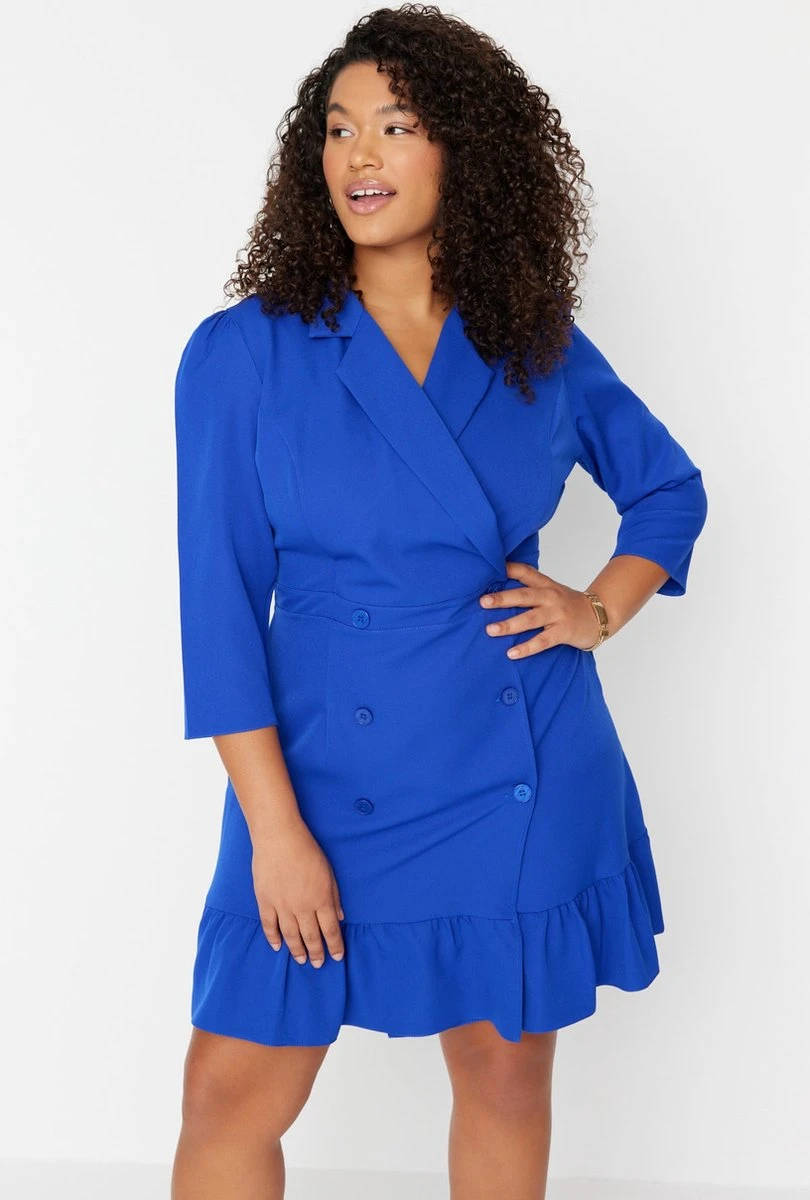 Trendyol Vrouwen Standaard Mouw Reverskraag Basis Grote Maten Jurk