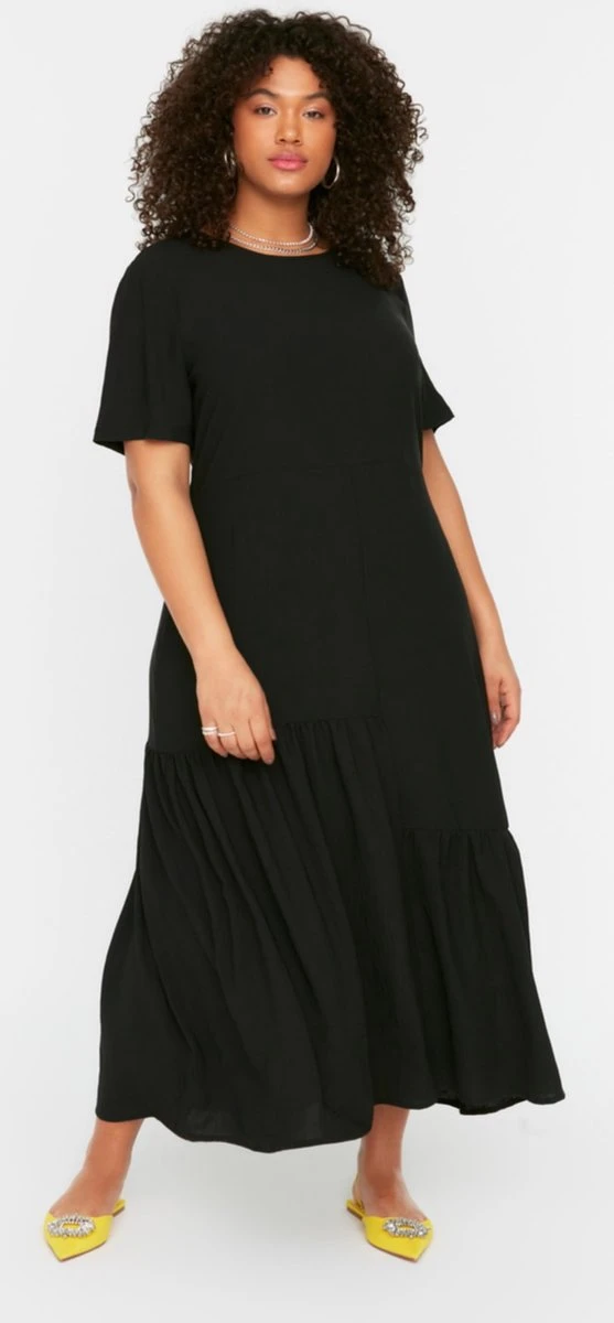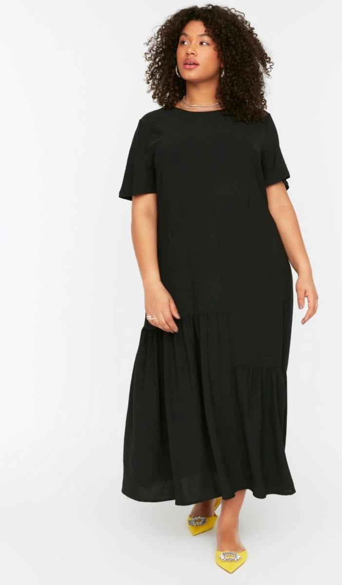 Trendyol Vrouwen Standaard Mouw Ronde Hals Ruche Zoom Grote Maten Jurk
