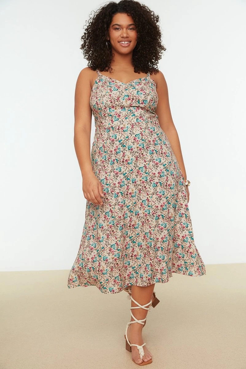 Trendyol Vrouwen Standaard Mouw V-hals Basis Grote Maten Jurk