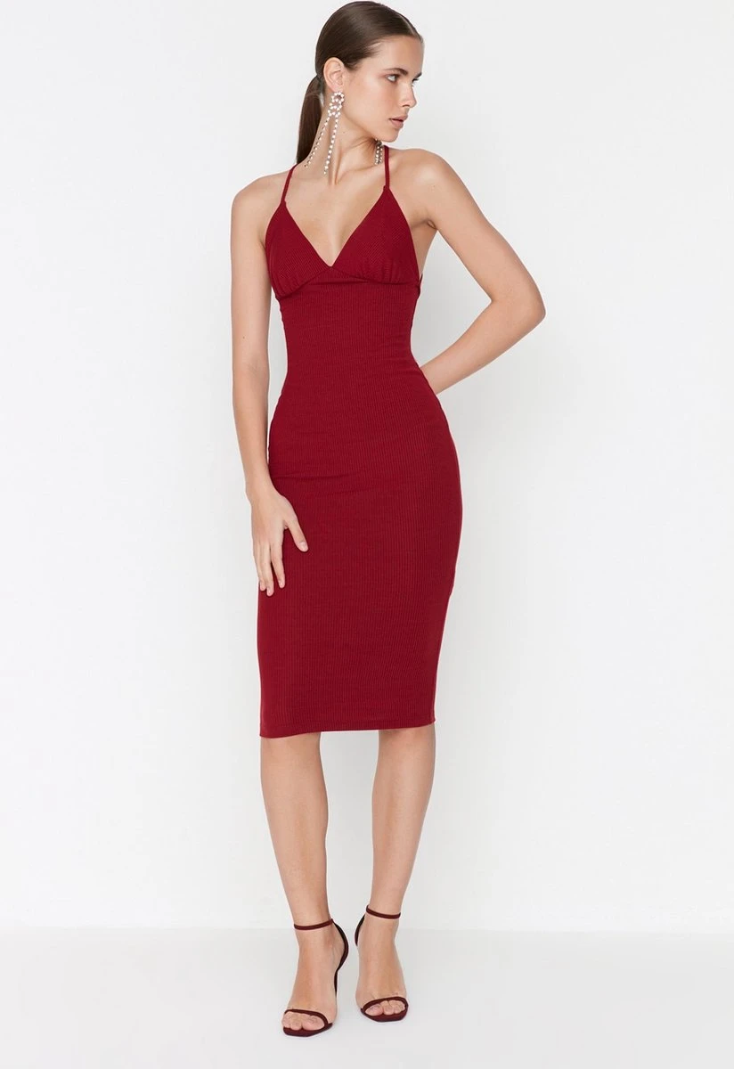 Trendyol Vrouwen Standaard Mouw V-hals Bodycon Jurk