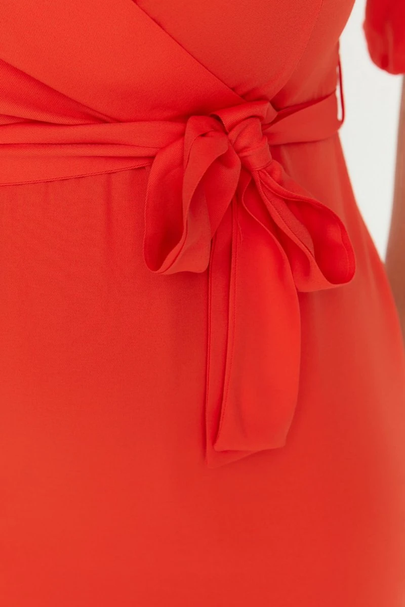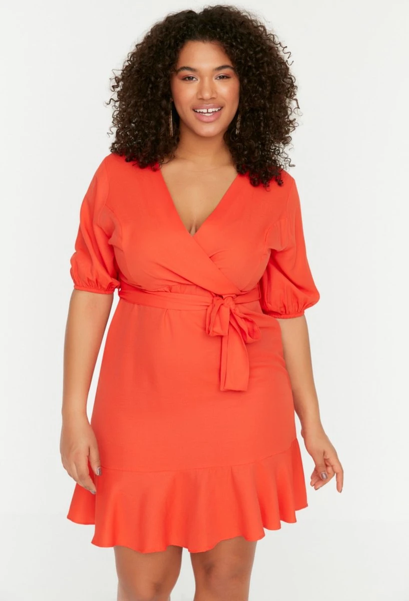 Trendyol Vrouwen Standaard Mouw V-hals Omslag Plus Size Jurk