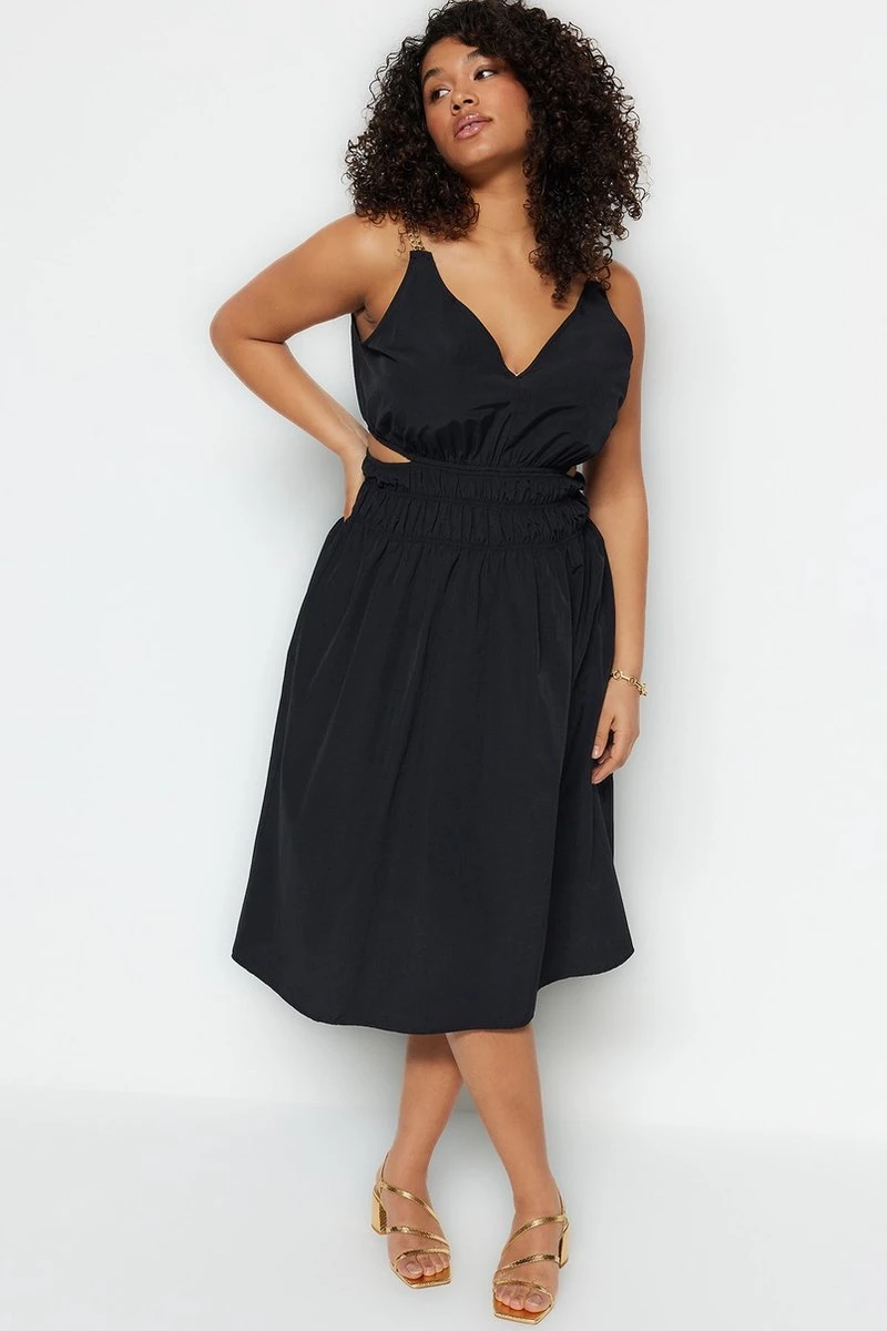 Trendyol Vrouwen Standaard Mouw V-hals Schaatser Grote Maten Jurk