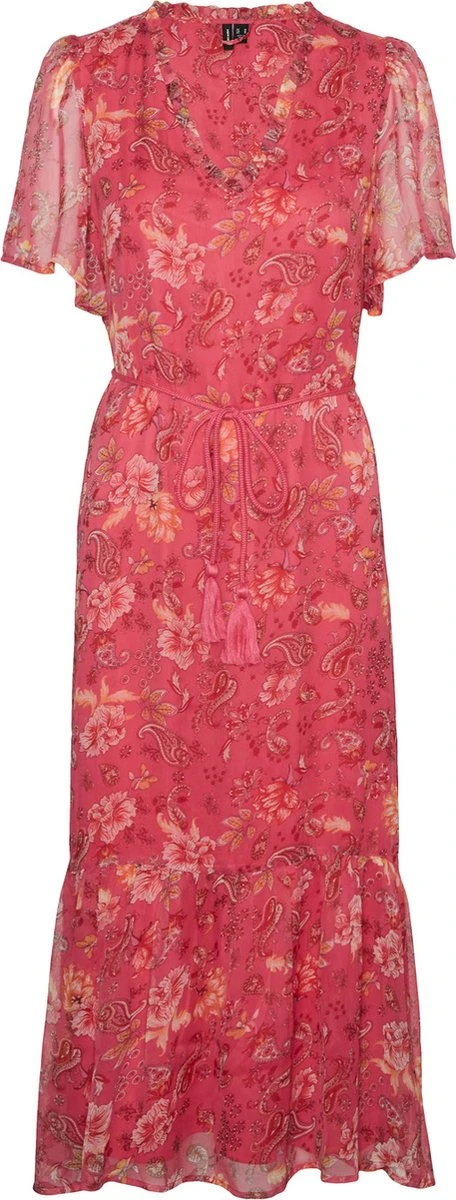 Bloemenprints voegen de juiste hoeveelheid elegantie toe, waardoor een gebloemde jurk perfect is voor jouw zomergarderobe. Als de look er te schattig uitziet kun je het cooler maken met een paar gave sneakers. Vergeet je favoriete accessoires niet!. – Type product : Jurk- Hals : V-Hals- Mouw lengte : Korte mouwen- Sluiting : Riem in de taille- Voering : Zachte, rekbare voering- Details : Riem die de taille accentueert, Riem in de taille, Gevlochten detail- Print : All-over print, herhaald over de hele stof