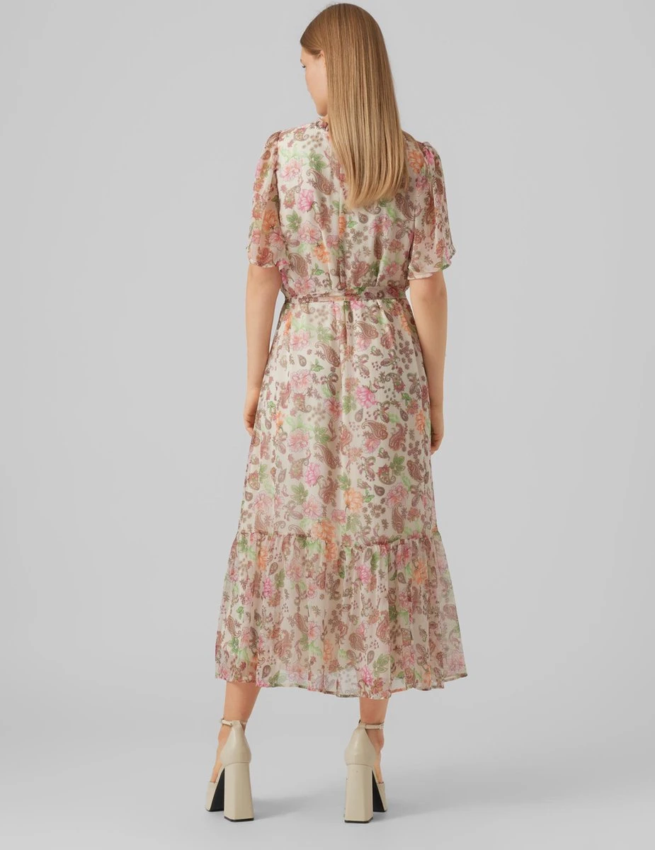 Bloemenprints voegen de juiste hoeveelheid elegantie toe, waardoor een gebloemde jurk perfect is voor jouw zomergarderobe. Als de look er te schattig uitziet kun je het cooler maken met een paar gave sneakers. Vergeet je favoriete accessoires niet!. – Type product : Jurk- Hals : V-Hals- Mouw lengte : Korte mouwen- Sluiting : Riem in de taille- Voering : Zachte, rekbare voering- Details : Riem die de taille accentueert, Riem in de taille, Gevlochten detail- Print : All-over print, herhaald over de hele stof