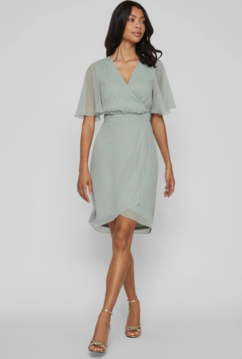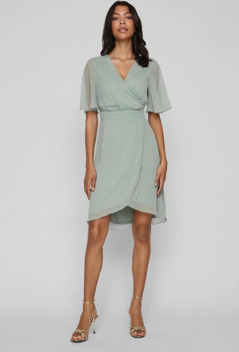 Vila Jurk Virilla V-neck 2/4 Short Dress/bm/d 14083771 Green Milieu Dames Maat – 40