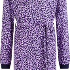 Een regular fit jurk van katoen met toegevoegde stretch, een dessin, een embroidery op de borst en een strikceintuur. Het model heeft een ronde hals en lange mouwen met geribde boorden.