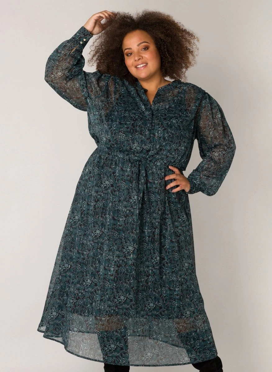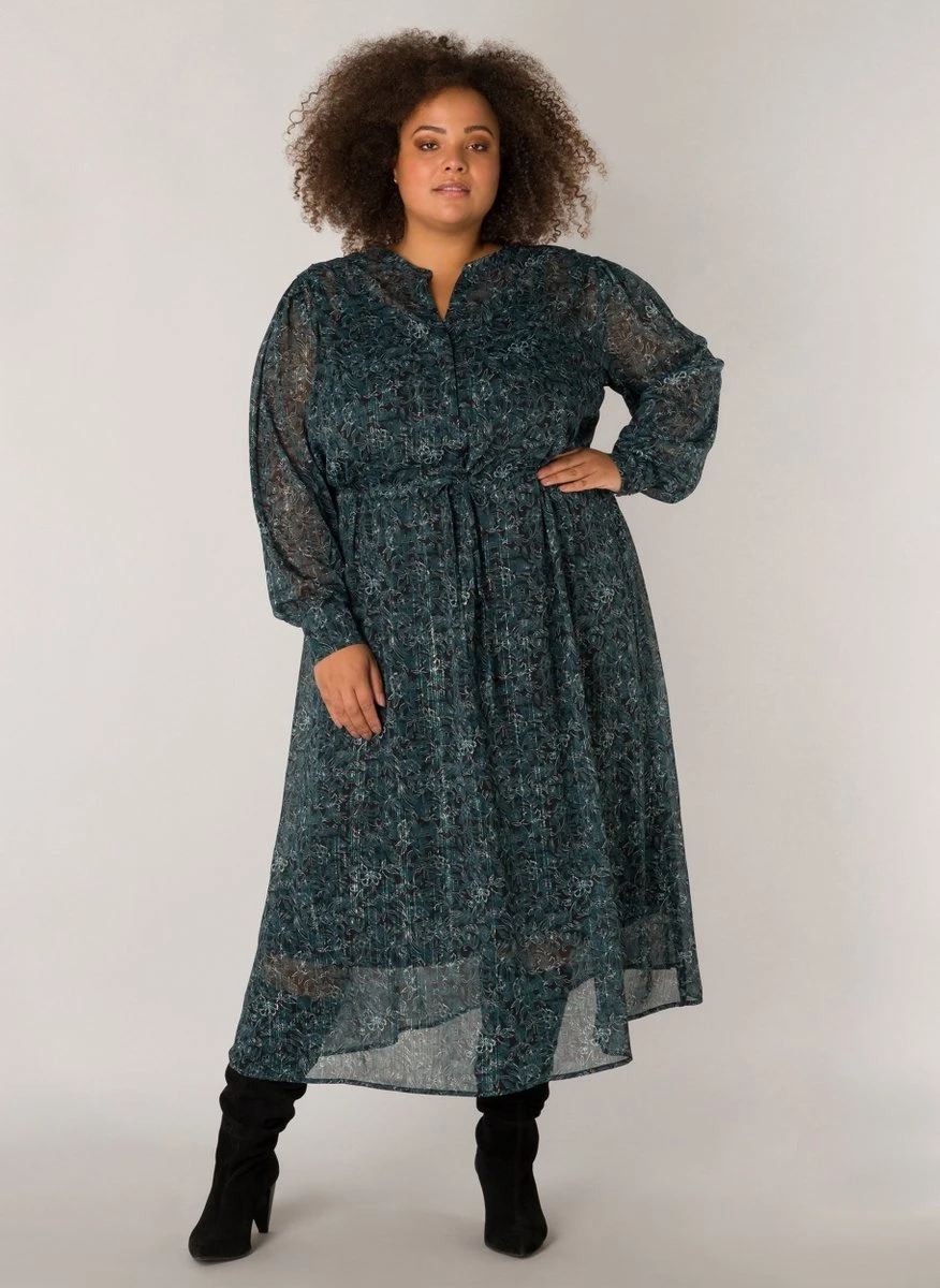 Printjurk met zilverkleurig lurexdraad erdoor verwerkt. Deze maxi jurk heeft een ronde halslijn en sluit met knoopjes en heeft een tunnel met een koordje in de taille. De mouwen zijn geplooid op d schouder en hebben een manchet met een goudkleurig knoopje.De Donna van YESTA heeft een Regular A-Line Fit en is gemaakt van 100% Polyester. Deze Jurk is verkrijgbaar in Black Multi Colour